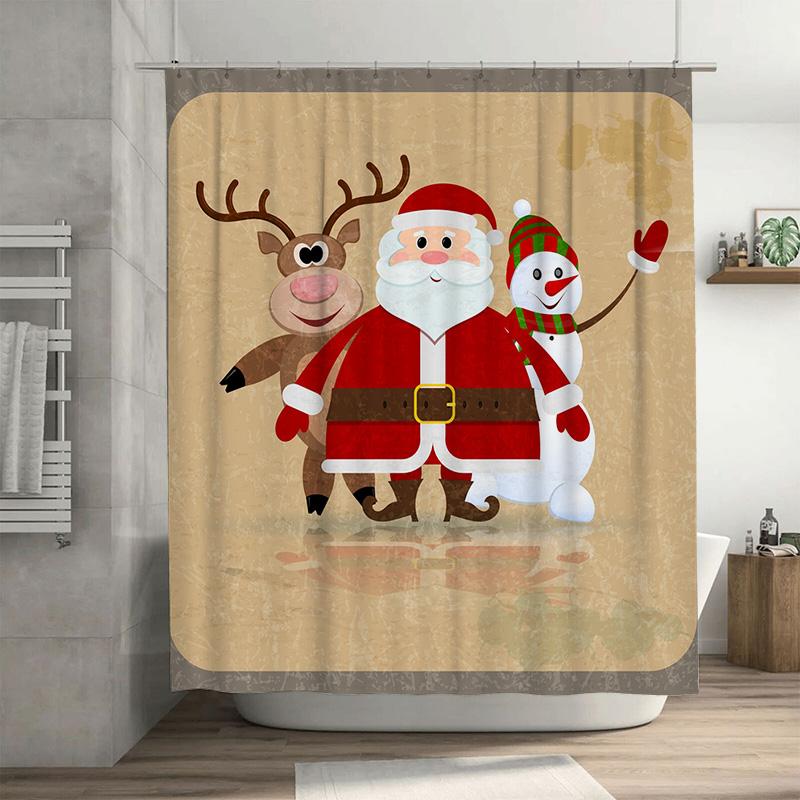 TU Christmas Shower Curtain Santa Claus Reindeer Holiday Festive Bathroom Decor Waterproof Xmas Pattern Holiday Home Decor Holid
