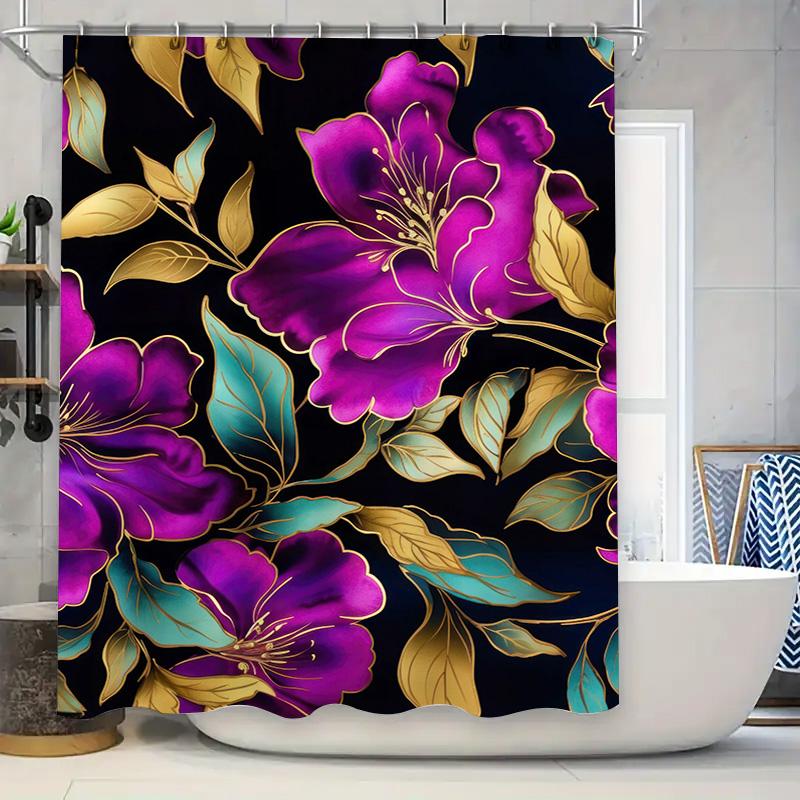 Classic Black Gold Damask Shower Curtain for Bathroom Decor Printed Waterproof Bath Curtains with Grommets Size: 72x84 inches