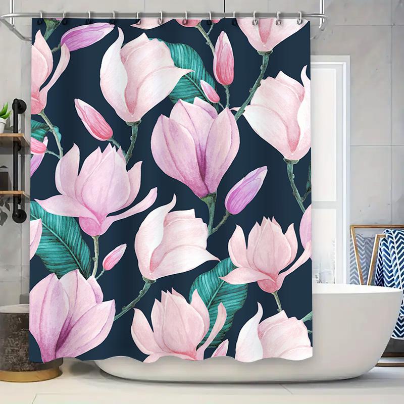 Luxury Floral Shower Curtain with Waterproof Fabric for Bathroom Decor Pink Magnolia Design Bath Shower curtain 3D Printed Water
