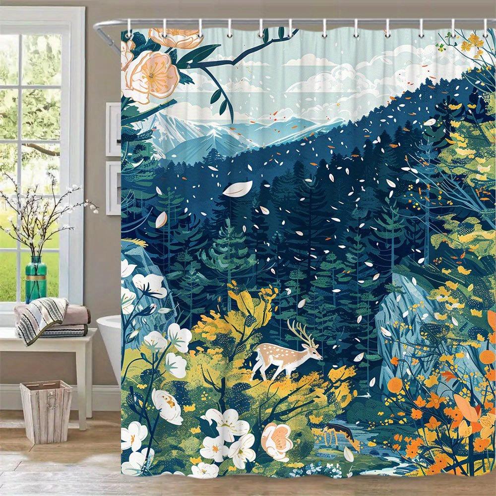 Forest Deer & Flowers Waterproof Mildew-Resistant Shower Curtain - Nature-Inspired Design for a Serene Bathroom Décor