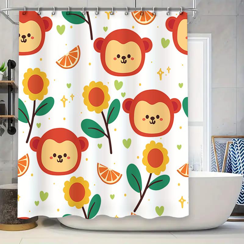 Cute Animal Shower Curtain with Sunflower Orange Fruit Print Waterproof Fabric for Bathroom Decor Available in Multiple Sizes