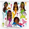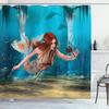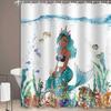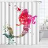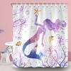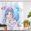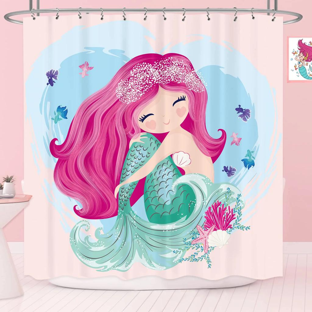 Mermaid Shower Curtain Tail Fish Girls Kids Cartoon Ocean Heart Colorful Purple Hair Seaweed Bath Decor with Hooks Waterproof