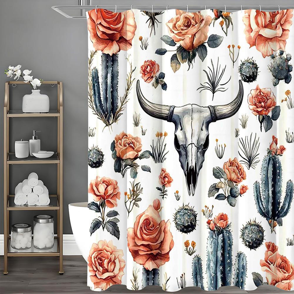 Cactus and rose flower Shower Curtain Washable Dirt-Resistant Shower Head waterproof Polyester Bath Curtain For Home Decor