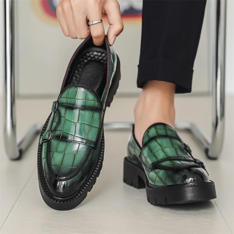 8670 Loafers One-Pedal Loafers Fashion Casual Leather Shoes Men's Platform Height Increasing Double Buckle Loafers