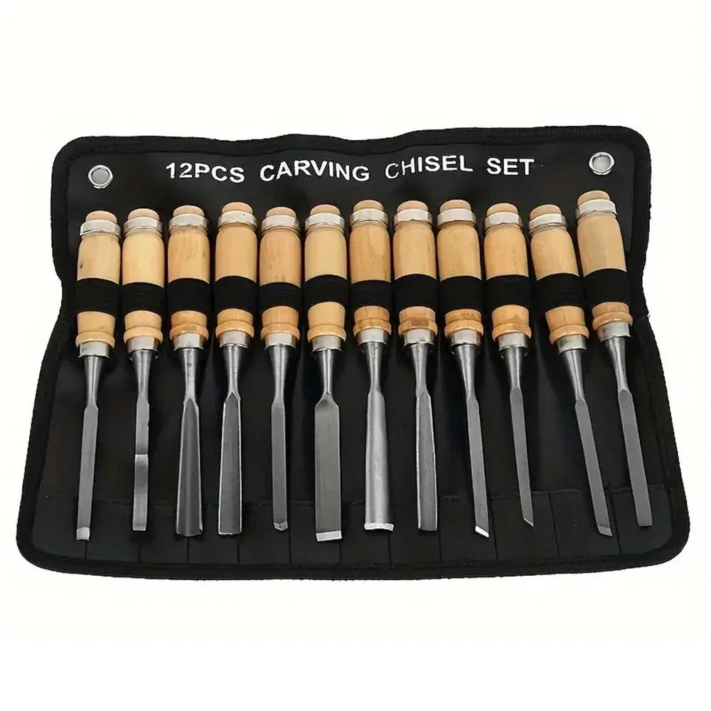 Wood Carving Hand Chisel 12PCS/Set Woodworking Lathe Gouges Tools Woodcarving Tools Set Carved Chisel Carving Knife Set