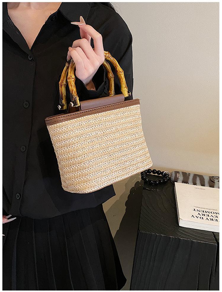 Fashion Texture Small Bag Women'S Seaside Niche Messenger Bag Woven Women'S Hand-Held Straw Bucket Bag