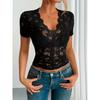 New Women's Sexy Lace V-Neck Black Bodysuit, European American Style, Cross-border Fashion Lingerie Top