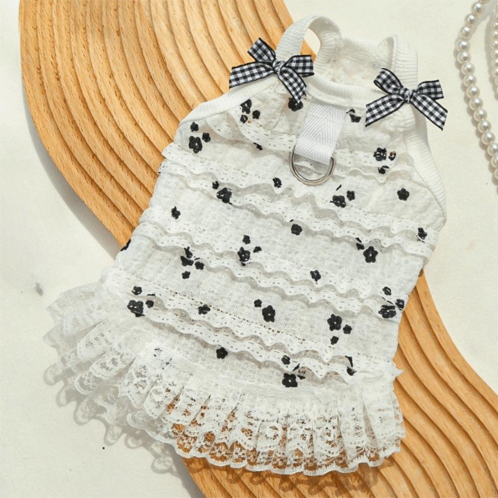 Embroidered Flower Dog Lace Dress Lace Bowknot Puppy Summer Clothing for Puppy Cats