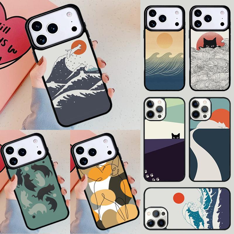 Abstract Cat Mount Japan Landscape Phone Case For iPhone 17 Air 14 15 13 12 Max Cover For Apple 15 16 16e 11 Pro Max Plus Coque