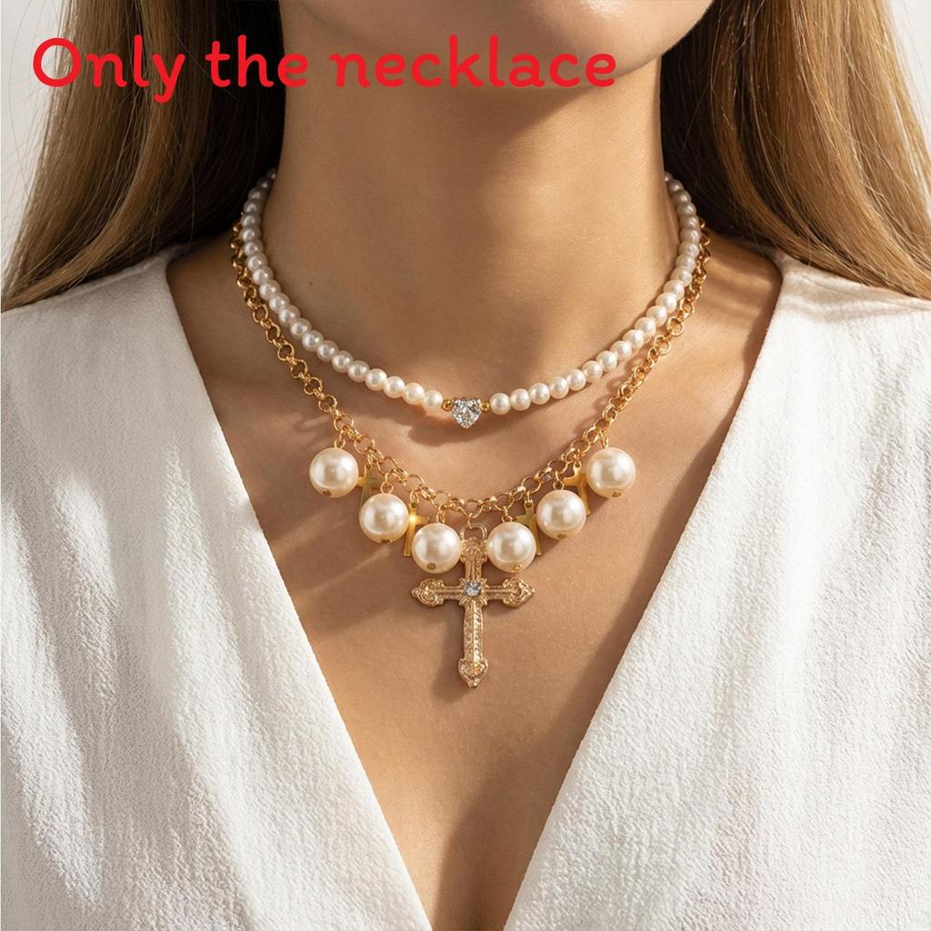This fashion cross pearl-inspired necklace set features a versatile layered design, combining geometric alloy elements with a prominent cross motif. Made of zinc alloy . Ideal for casual or everyday wear, it adds a stylish touch to daily outfits. Wipe clean with a soft cloth to maintain its luster.