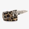 This leopard print Western-style leather belt features an alloy buckle with a pin closure, crafted from durable PU material. It measures approximately with a width of 2-4cm and length of 103cm plus 3cm. Ideal for casual wear, it enhances outfits with its irregular pattern design. Easy to maintain by wiping with a damp cloth.