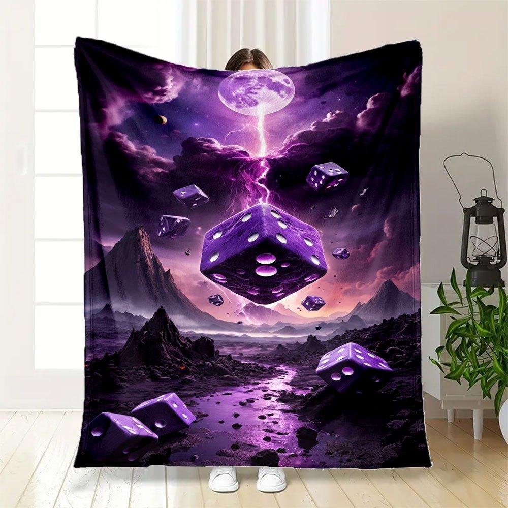 Purple Dice Fantasy Landscape Wall Art PrintBlanket Flannel Throw Blanket for Sofa, Bed, Travel, Camping, Office