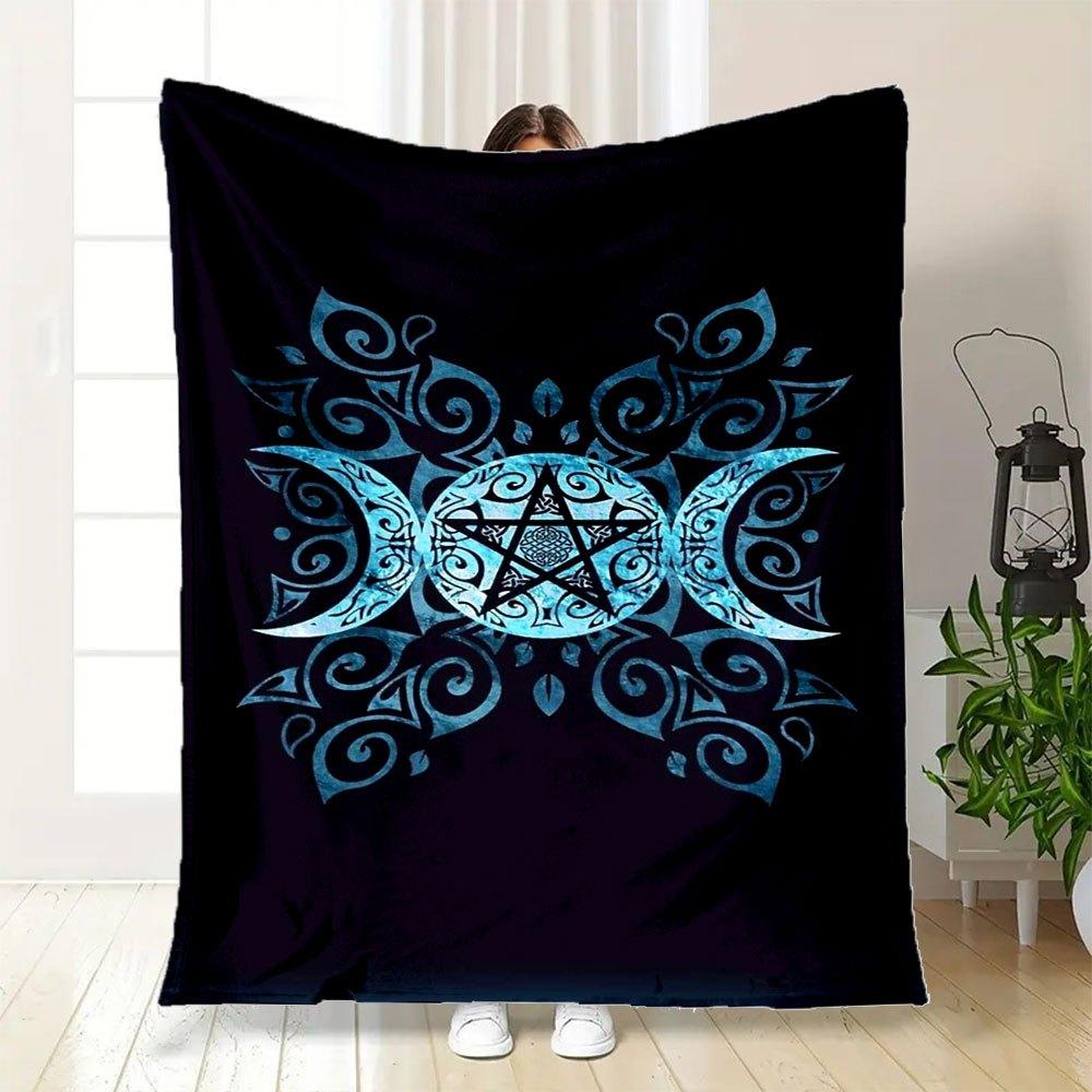 Blue Moon Pentagram Mandala Art Print Poster Wall DecorBlanket Flannel Throw Blanket for Sofa, Bed, Travel, Camping, Office