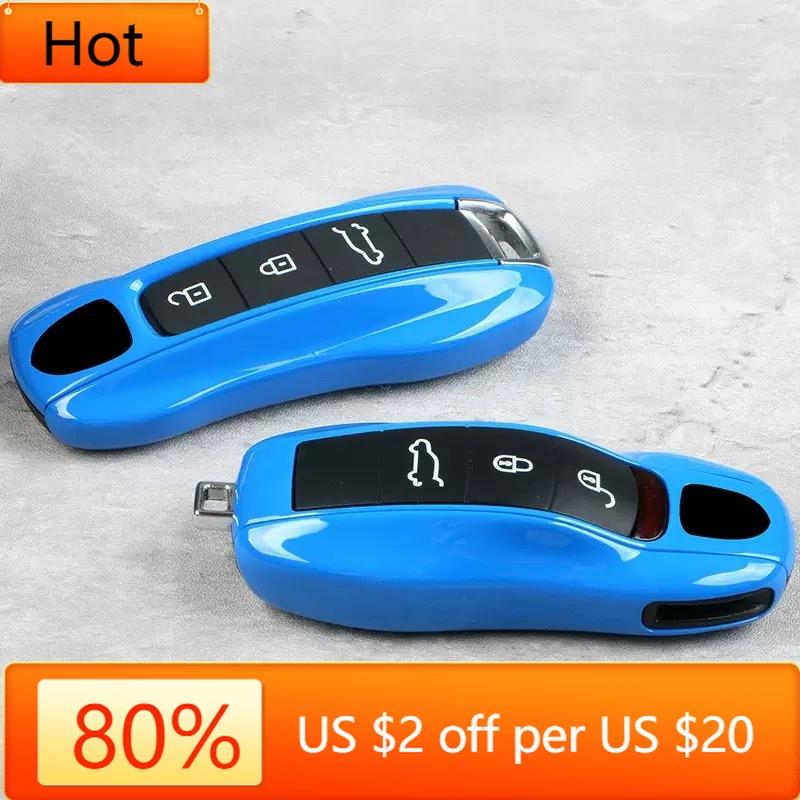 Interior Mouldings Car Key Cover Shark Blue For Porsche Panamera Boxster Macan Cayenne Taycan 911 718 Cayman I