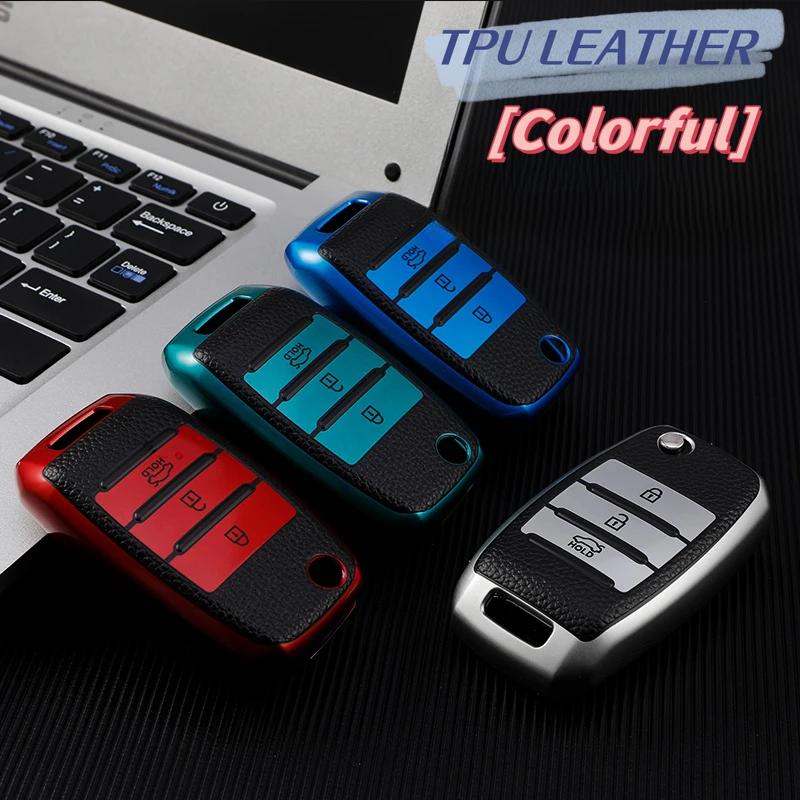 3tlačítkové TPU+Kožené pouzdro na klíč od auta pro Kia Rio 3 K2 Ceed Cerato K3 Sportage 4 Picanto K5 Optima Sorento Forte Stinger 2017 2018