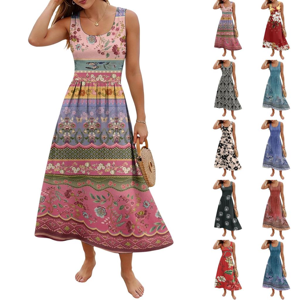 Ladies' floral summer casual and fashionable sleeveless long dress