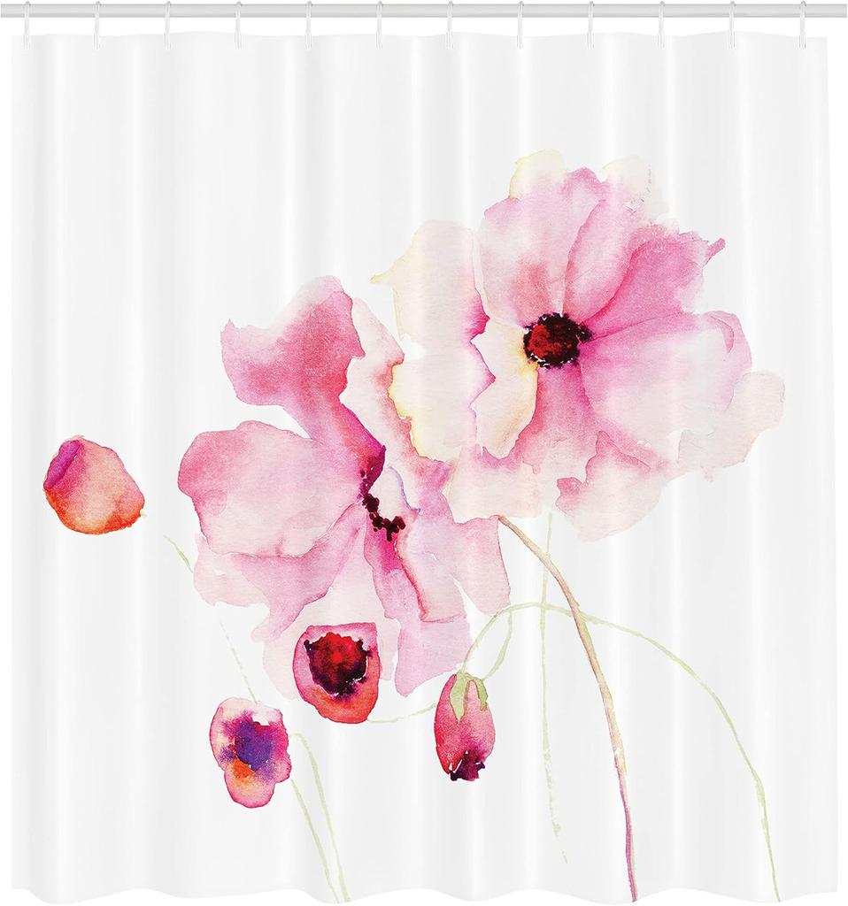 Watercolor flower shower curtain with hooks-soft pink flowers, dreamy spring art, fresh floral bathroom decoration