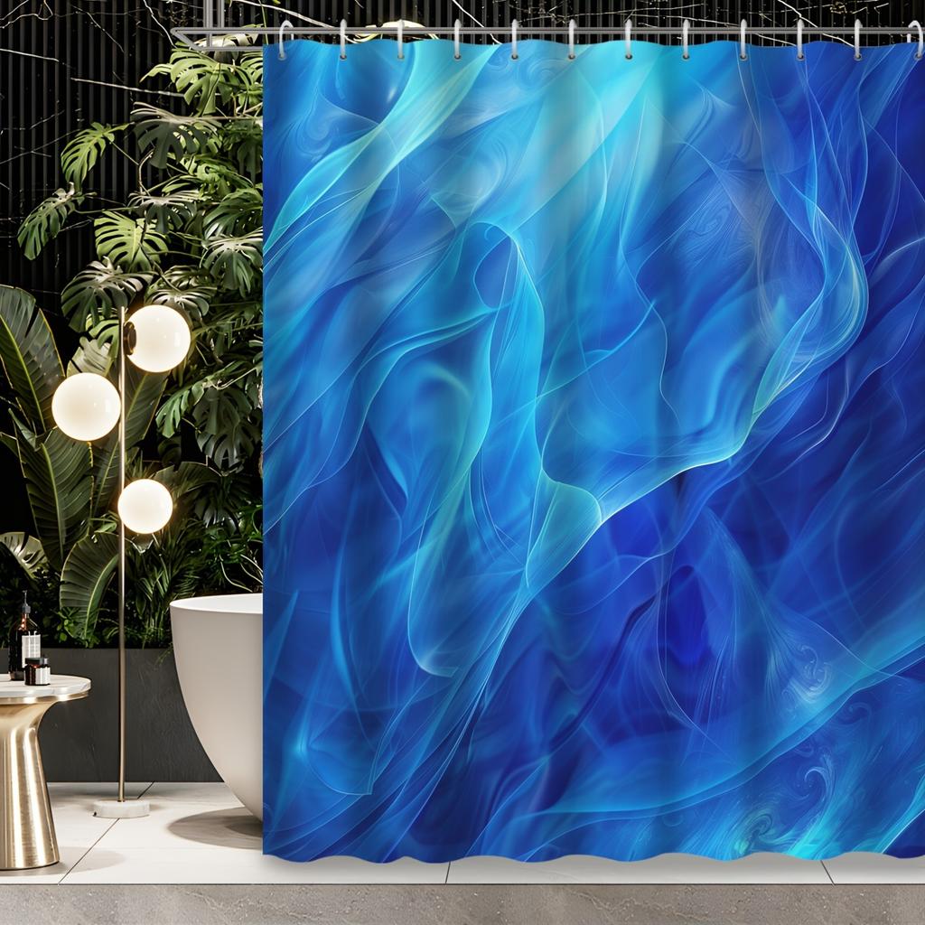 1pc Blue Theme Abstract Art Geometric Smoke Shower Curtain, Decorative Printed Shower Curtain, Contains 12 Hooks, Shower Curtain