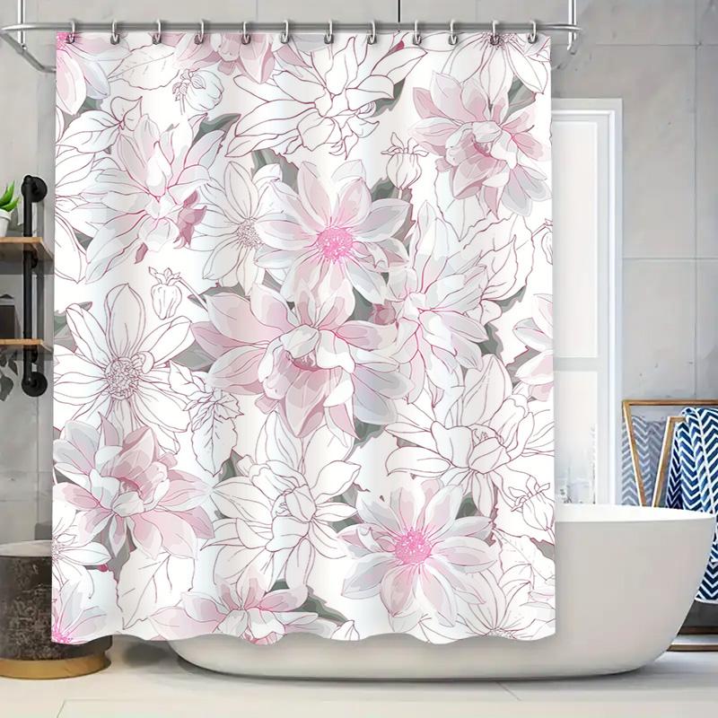 Whimsical Floral Bath Shower Curtain Pink Bloom Decor for Your Bathroom