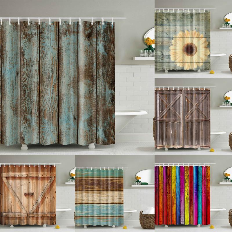 Vintage Style Retro Wooden Door Bathroom Shower Curtains Frabic Waterproof Polyester Bath Curtains With Hooks