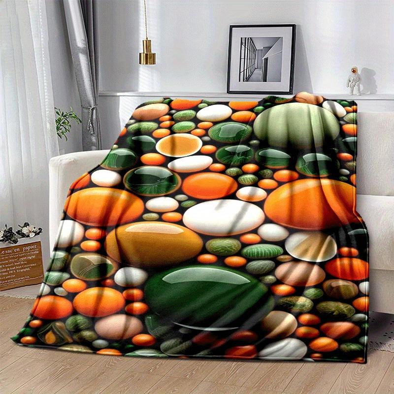1pc Colored Stone Printing Lightweight Flannel Blanket, Comfortable and Warm Blanket, for Camping Sofa Bed and Couch Office, Gift