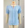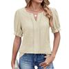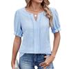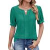 Spring Summer New Women's Solid Color V-neck Loose Puff Sleeve Jacquard T-shirt Top For Cross-border Export