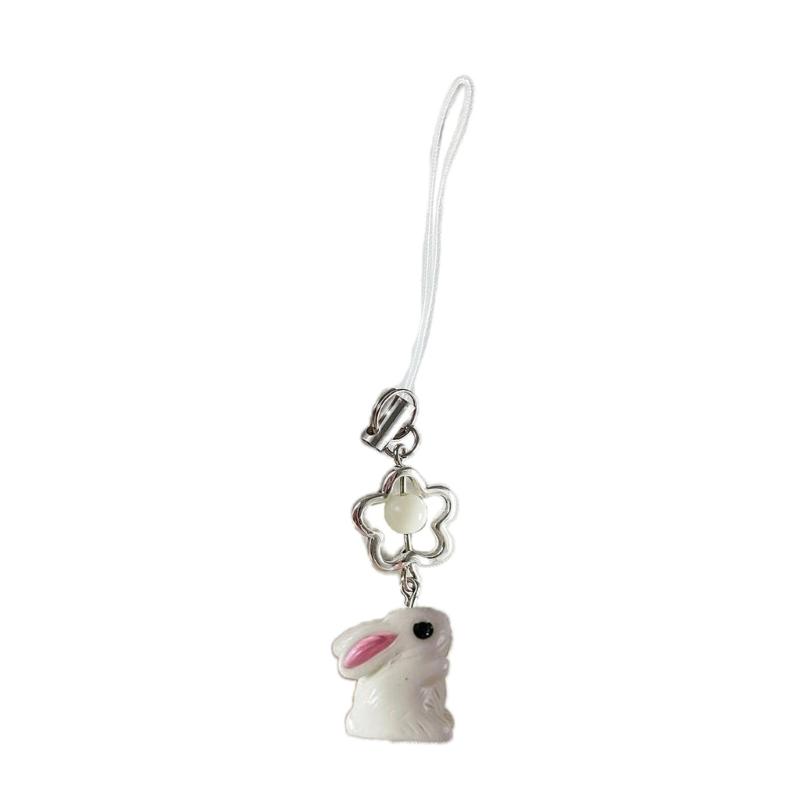 Korean 3D Rabbit Flower Phone Chain Lanyard Y2k Girl Bowknot Keychain Sweet Bag Pendant Decoration Backpack Ornament