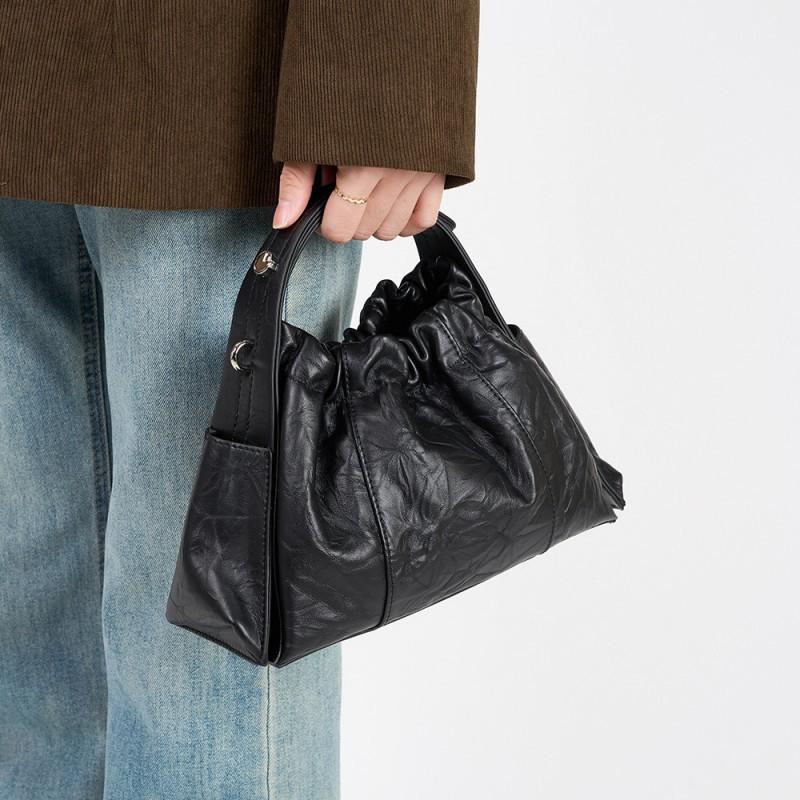 Small Niche Design Hand Grip Pattern Cowhide Handbag Classic Versatile Women's Crossbody Bag Fashionable Retro Shoulder