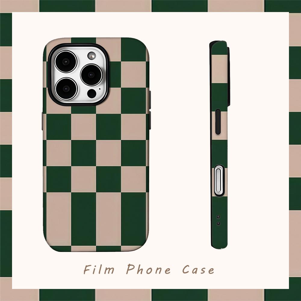 Green Checkerboard Phone Case for IPhone 16 15 14 13 12 11 X XS XR XSMAX 7 8 Pro Max Plus Double-layer Back Cover