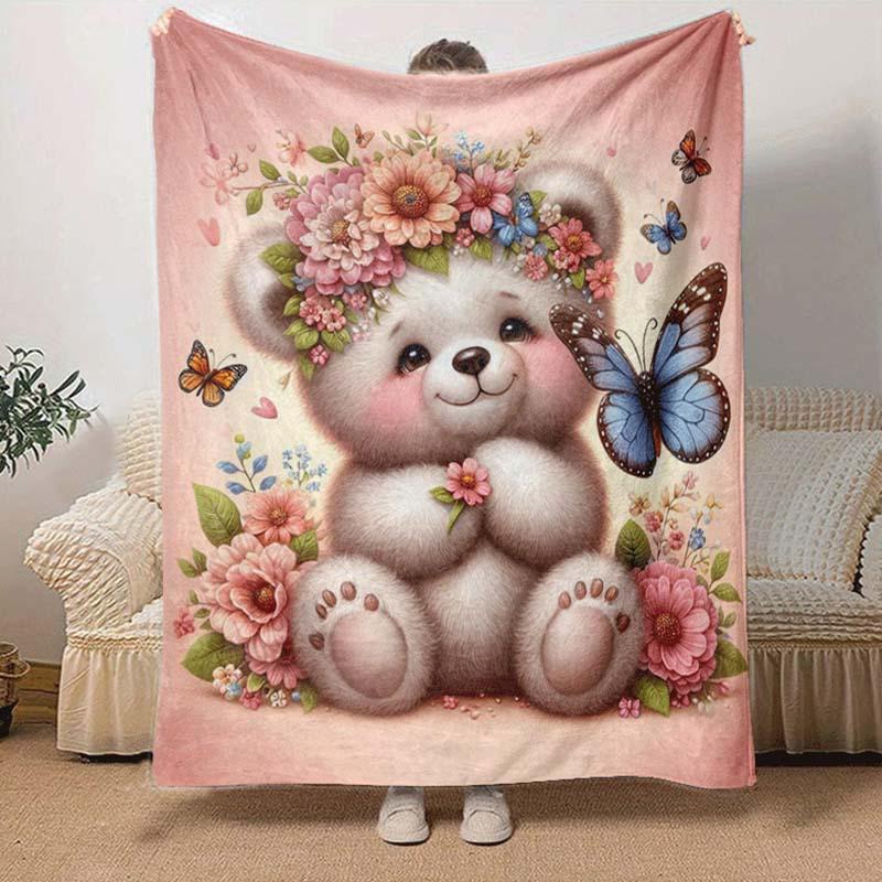 1pc Bear Butterfly Printing Lightweight Flannel Blanket, Comfortable and Warm Blanket, for Camping Sofa Bed and Couch Office, Suitable for Gi