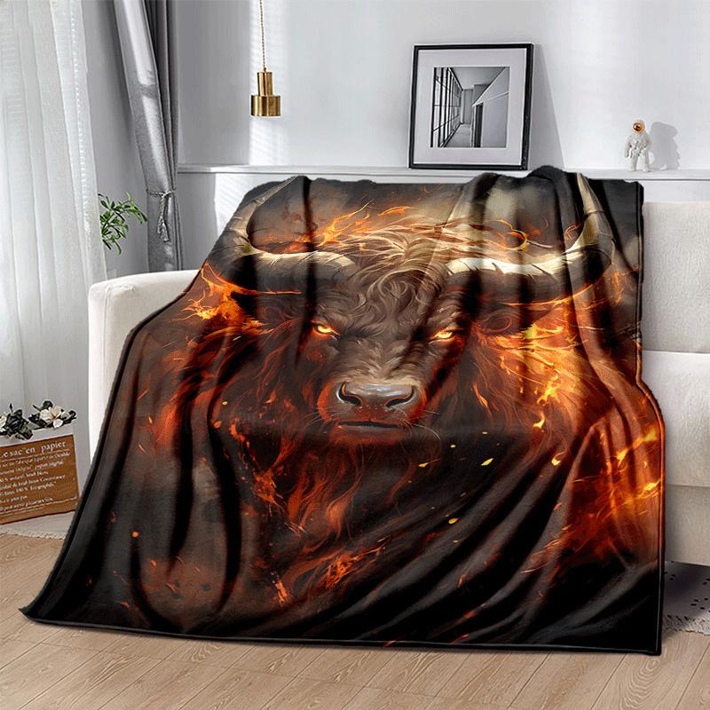 1pc Ox Printing Lightweight Flannel Blanket, Comfortable and Warm Blanket, for Camping Sofa Bed and Couch Office, Suitable for Gift Blankets