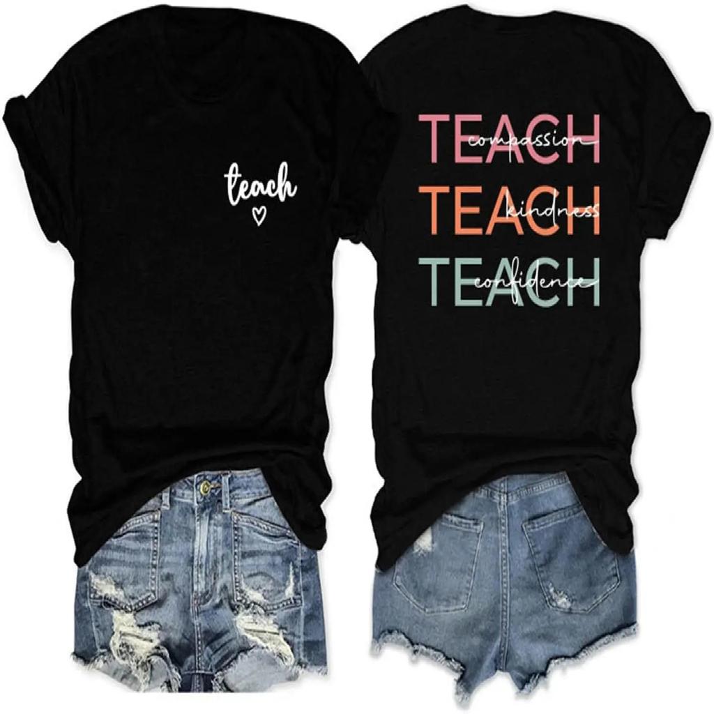 Women Teacher Shirts Teach Compassion Kindness Confidence Teacher Gift Tshirt Letter Print Short Sleeve Tee Tops