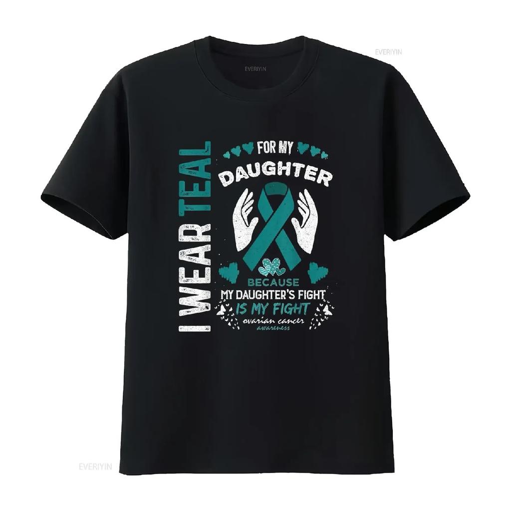 Womens I Wear Teal for My Daughter Ovarian Cancer Ribbon Awareness T Shirt Black 2X Large vintage Washed Casual Breathable Soft
