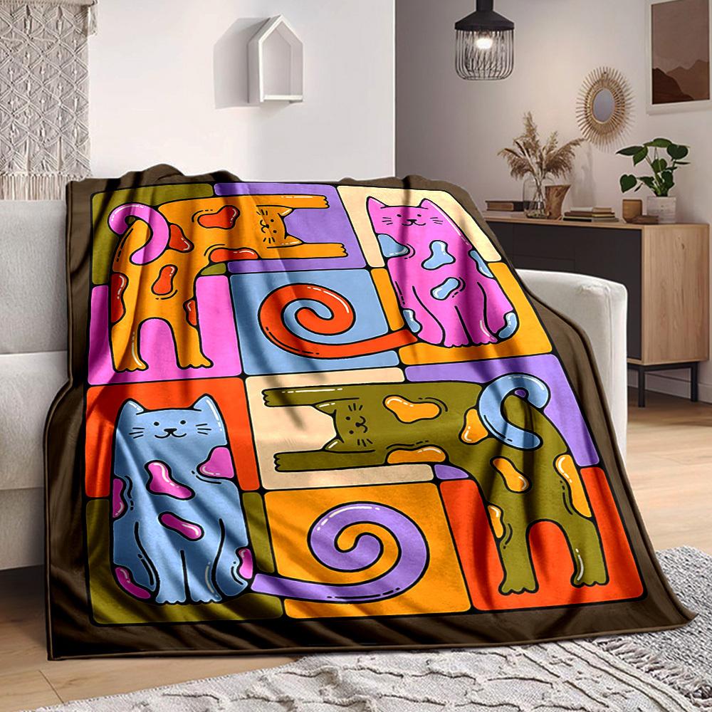 1pc Colorful Cats Blanket Lightweight Flannel Blanket Throw Blanket For Sofa, Bed, Travel, Camping, Livingroom, Office, Couch, Chair, And Bed yy251015