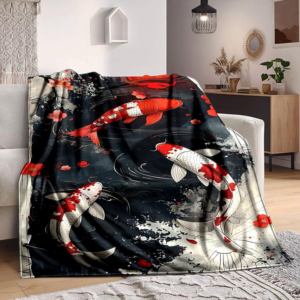 1PC Koi Fish Pond Blanket, Throw For Sofa, Bed, Travel, Camping, Livingroom, And Bed, Printing Blanket With Soft And Warm Fabric yy250918197