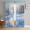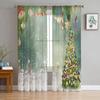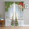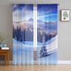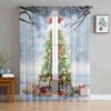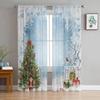 Christmas Tree Print Curtain Bedroom Living Room Cafe Xmas Snowflake Winter Semi Drape Voile Window Treatment Sheer For Sitting Made Of Polyester