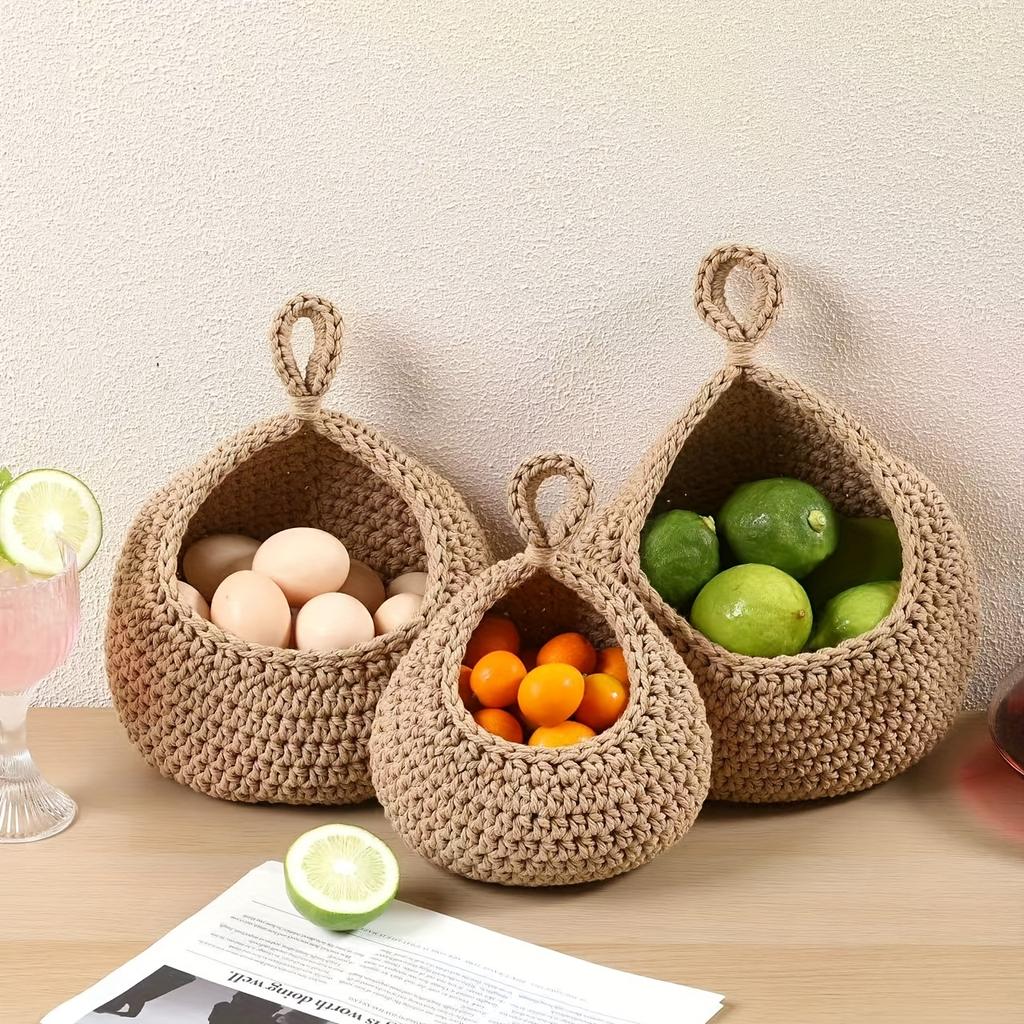 Handmade Macrame Hanging Fruit Basket Wall Decor Creative Nest Net Storage Bag Kitchen Organizer