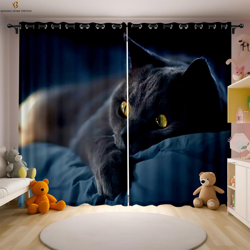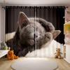 Cat Cartoon Printed Curtains Polyester Bedroom Living Room Kids Window Decoration Curtain Set Of 2 Made Washable Sitting Ready