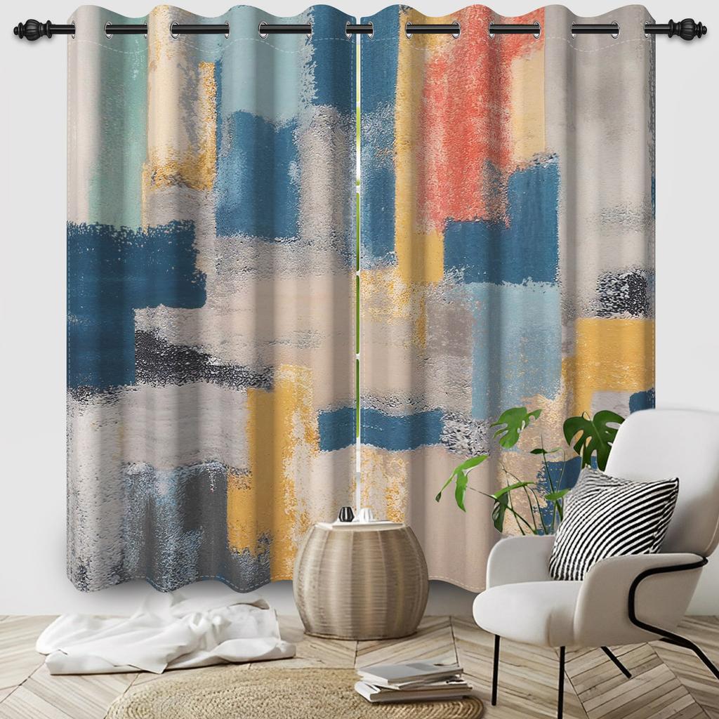 Blackout Abstract Geometric Art Curtains Multicolor Bedroom Living Room Kitchen Decorative Top Curtain Modern Polyester With Grommet Washable Ready