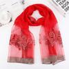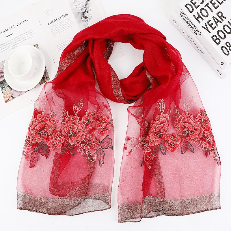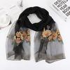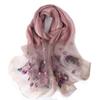 Hangzhou silk and wool blend exquisite embroidered women's long silk scarf, classic mulberry silk shawl in apricot color