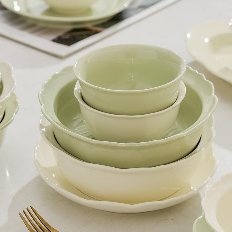 Underglaze Cream Style Tableware Dish Set Household Rice Bowl New Small Fresh New Value Rice Bowl Plate