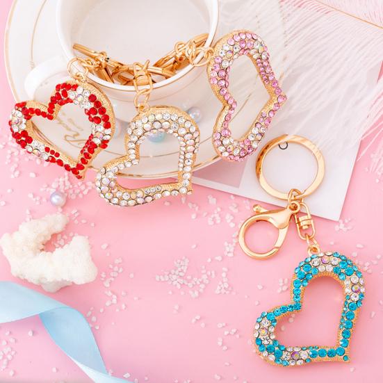 This exquisite keychain features a durable alloy electroplating process, ensuring long-lasting color that resists fading. Adorned with firmly inlaid, colorful rhinestones available in red, silver, pink, and blue, it sparkles brilliantly under light.
