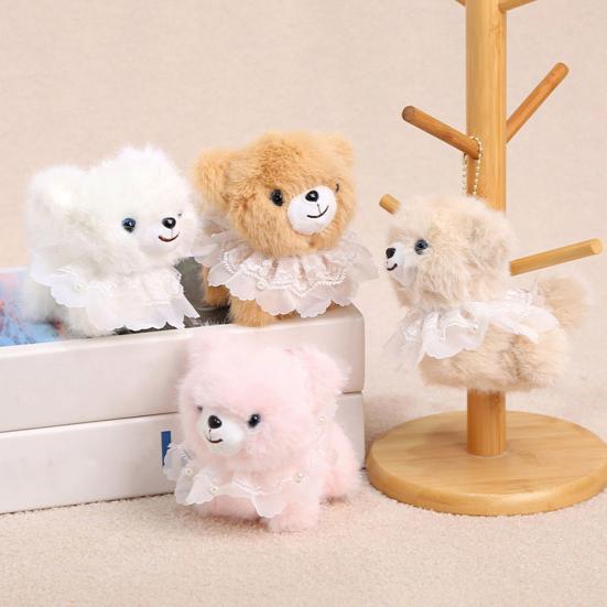 This doll pendant features a portable design with a metal bead chain buckle, allowing easy attachment to bags, keychains, or other accessories. Crafted with hand-sewn lace collar and pearl embellishments, it exudes elegance and sophistication. The soft, fluffy plush texture and gentle color scheme create a cute, healing aesthetic inspired by a naive little bear.