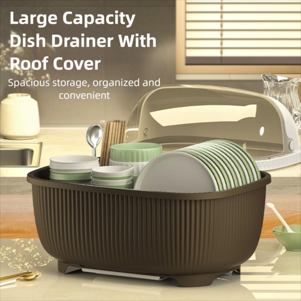 Plastový odkapávač nádobí se střešním krytem Velká kapacita Organizér na příbory Domácnost
