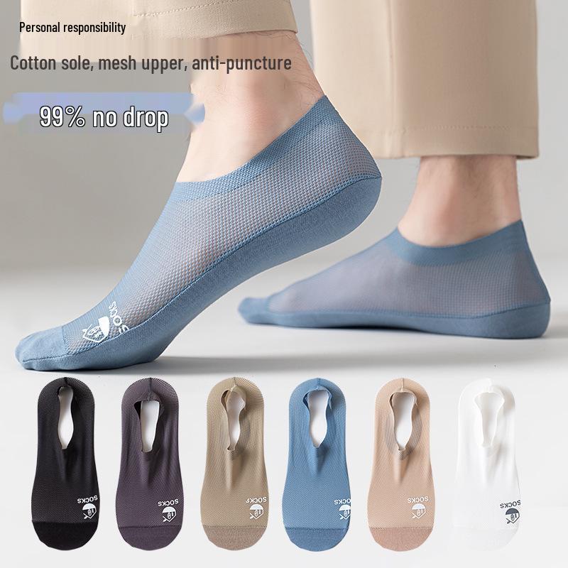 Men's Summer Ice Silk Invisible Socks - Breathable, Sweat-Absorbent, Anti-Slip, Low-Cut Mesh Cotton.