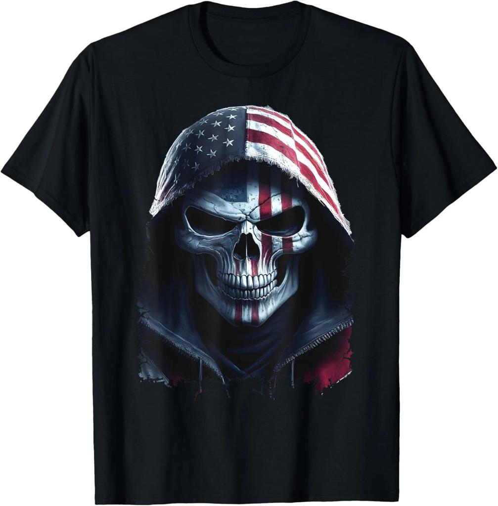 American Flag Skull Art Grim Reaper with USA Flag Hood Gift Unisex T-Shirt