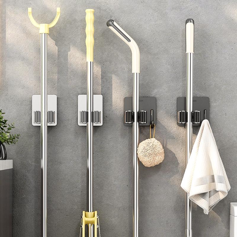 Stainless Steel Wall-Mounted No-Drill Mop and Broom Holder
