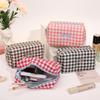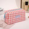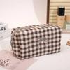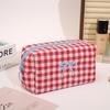 Trendy Plaid Makeup Bag Embroidered Bow Octagonal Cosmetics Organizer Makeup Pouch Portable Travel Organizer Bags Toiletries Bag