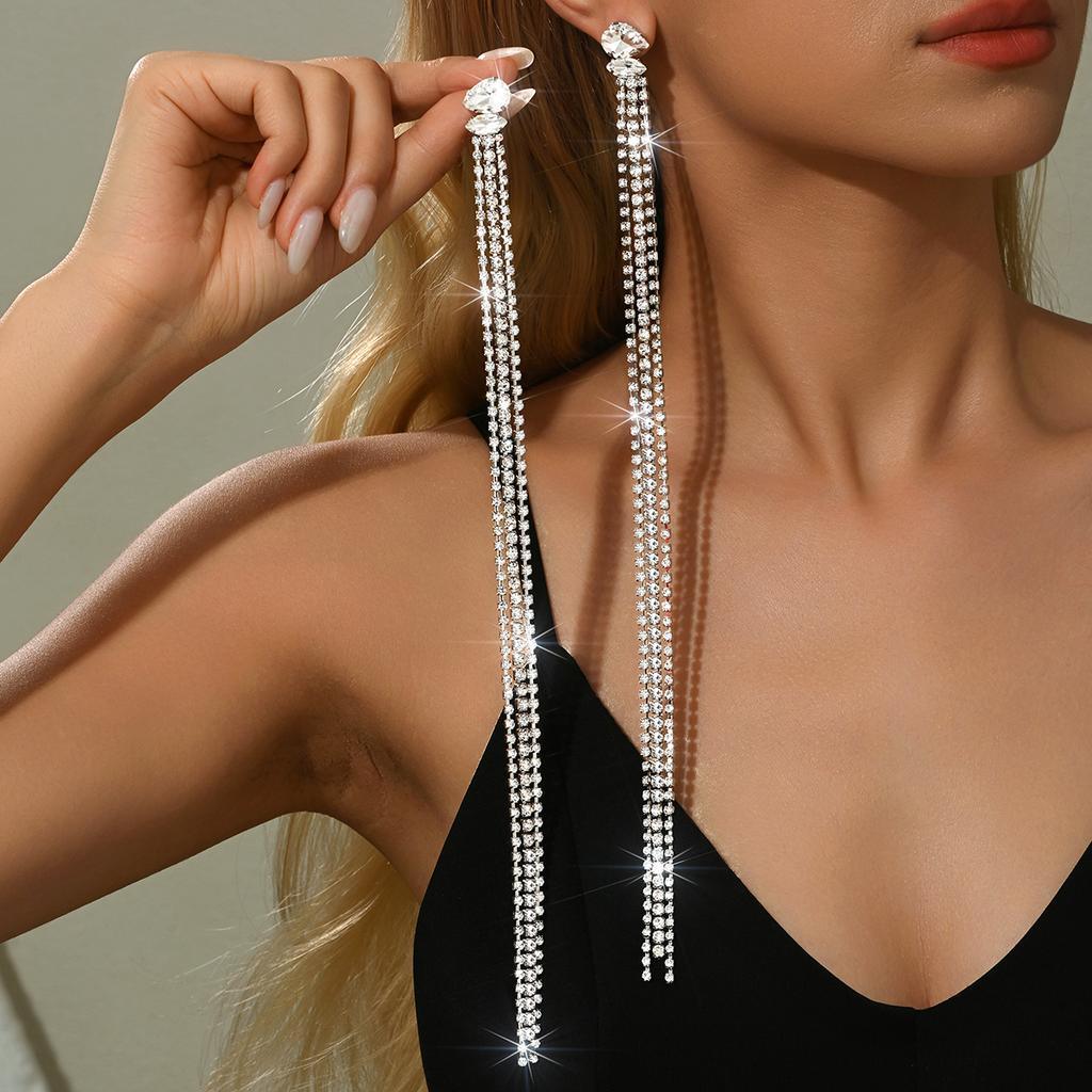 European and American cross-border design, personalized long chain silver earrings, earrings