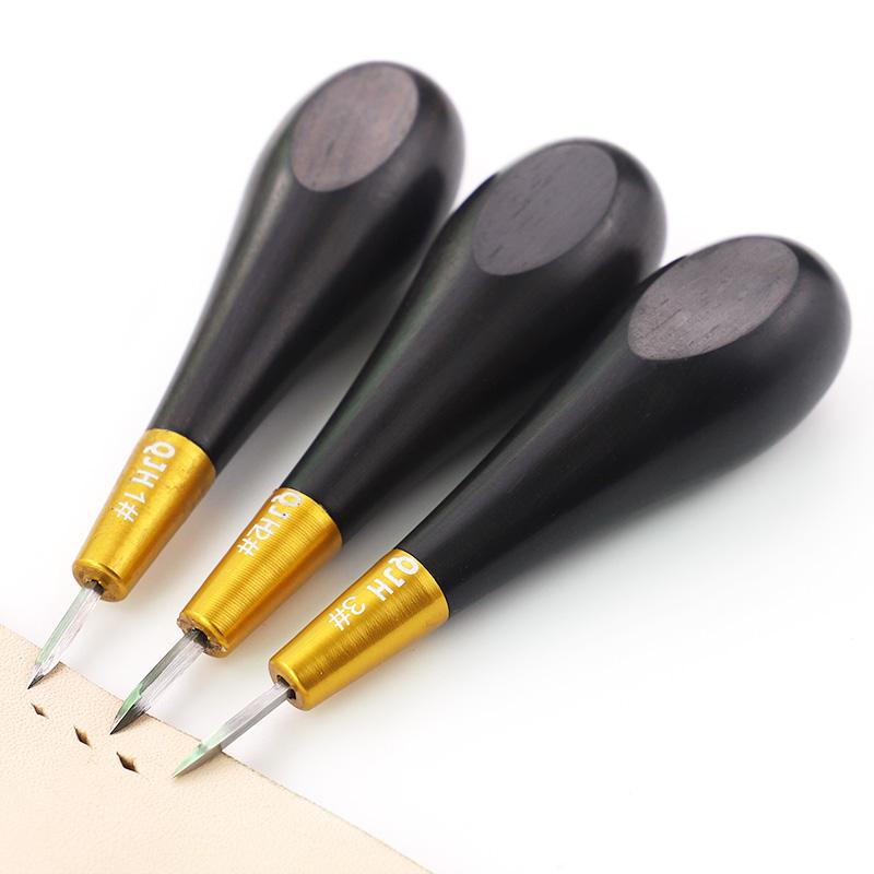 1pc Handmade DIY Leather Hole Punch Awl Tool, Black Handle Diamond Chopping Puncher, Leather Perforation Sewing Craftwork Tool